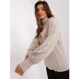 Béžový sveter s rolákom a záplatami .