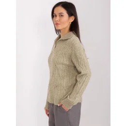 Dámsky sveter v khaki farbe s károvaným golierom.