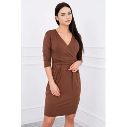 Priliehavé šaty s výrezom pod prsiami hnedej farby