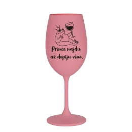 PRINCE NAJDU, AŽ DOPIJU VÍNO. - růžová sklenice na víno 350 ml