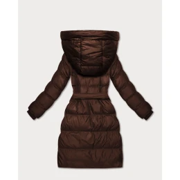 Prošívaná zimní bunda v čokoládové barvě s páskem model 21748221 - J.STYLE