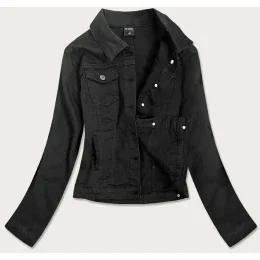 Jednoduchá čierna dámska džínsová bunda s vreckami (SA40)