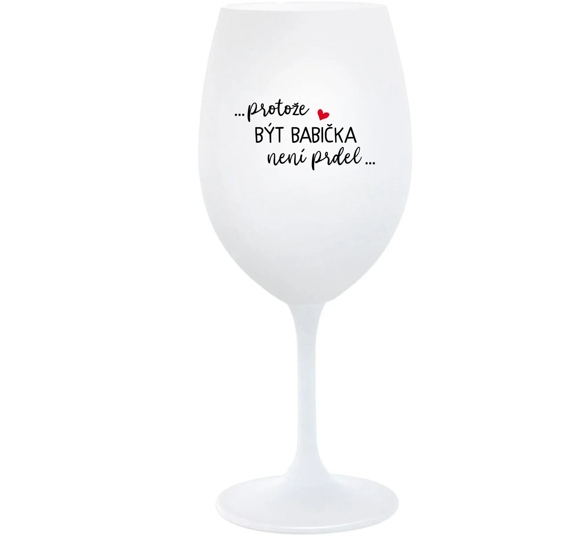 Vinná bílá sklenice s originálním motivem ...PROTOŽE BÝT BABIČKA NENÍ PRDEL.. je krásným a osobitým dárkem, které ale využijete i Vy sami třeba ve chvílích, kdy si budete chtít zpříjemnit náročný den. Tyto originální vinné sklenice jsou totiž nejen pro výjimečné události, ale i pro běžné večery, které si chcete zpříjemnit sklenkou dobrého vína. Jistě proto potěší každého milovníka vína, i toho, kdo si umí svůj život vychutnat plnými doušky.parametre