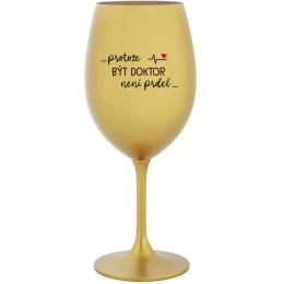 Vinná zlatá sklenice s originálním motivem ...PROTOŽE BÝT DOKTOR NENÍ PRDEL... je krásným a osobitým dárkem, které ale využijete i Vy sami třeba ve chvílích, kdy si budete chtít zpříjemnit náročný den. Tyto originální vinné sklenice jsou totiž nejen pro výjimečné události, ale i pro běžné večery, které si chcete zpříjemnit sklenkou dobrého vína. Jistě proto potěší každého milovníka vína, i toho, kdo si umí svůj život vychutnat plnými doušky.parametre