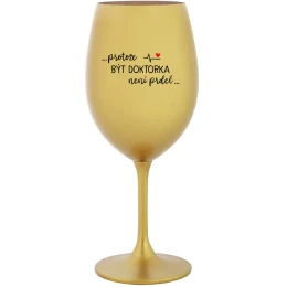 Vinná zlatá sklenice s originálním motivem ...PROTOŽE BÝT DOKTORKA NENÍ PRDEL... je krásným a osobitým dárkem, které ale využijete i Vy sami třeba ve chvílích, kdy si budete chtít zpříjemnit náročný den. Tyto originální vinné sklenice jsou totiž nejen pro výjimečné události, ale i pro běžné večery, které si chcete zpříjemnit sklenkou dobrého vína. Jistě proto potěší každého milovníka vína, i toho, kdo si umí svůj život vychutnat plnými doušky.parametre