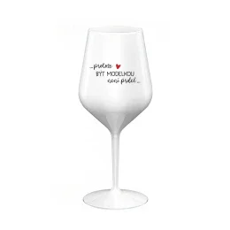 PROTOŽE BÝT MODELKOU NENÍ PRDEL - bílá nerozbitná sklenice na víno 470 ml