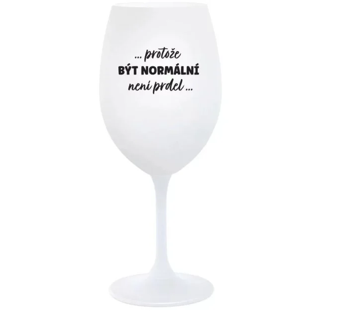 Vinná bílá sklenice s originálním motivem ...PROTOŽE BÝT NORMÁLNÍ NENÍ PRDEL... je krásným a osobitým dárkem, které ale využijete i Vy sami třeba ve chvílích, kdy si budete chtít zpříjemnit náročný den. Tyto originální vinné sklenice jsou totiž nejen pro výjimečné události, ale i pro běžné večery, které si chcete zpříjemnit sklenkou dobrého vína. Jistě proto potěší každého milovníka vína, i toho, kdo si umí svůj život vychutnat plnými doušky.