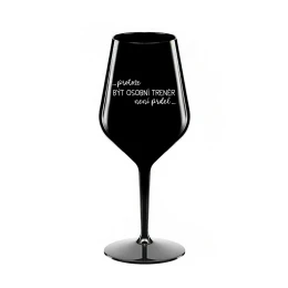 PROTOŽE BÝT OSOBNÍ TRENÉR NENÍ PRDEL - černá nerozbitná sklenice na víno 470 ml