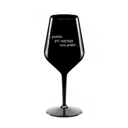 PROTOŽE BÝT PARTNER NENÍ PRDEL - černá nerozbitná sklenice na víno 470 ml