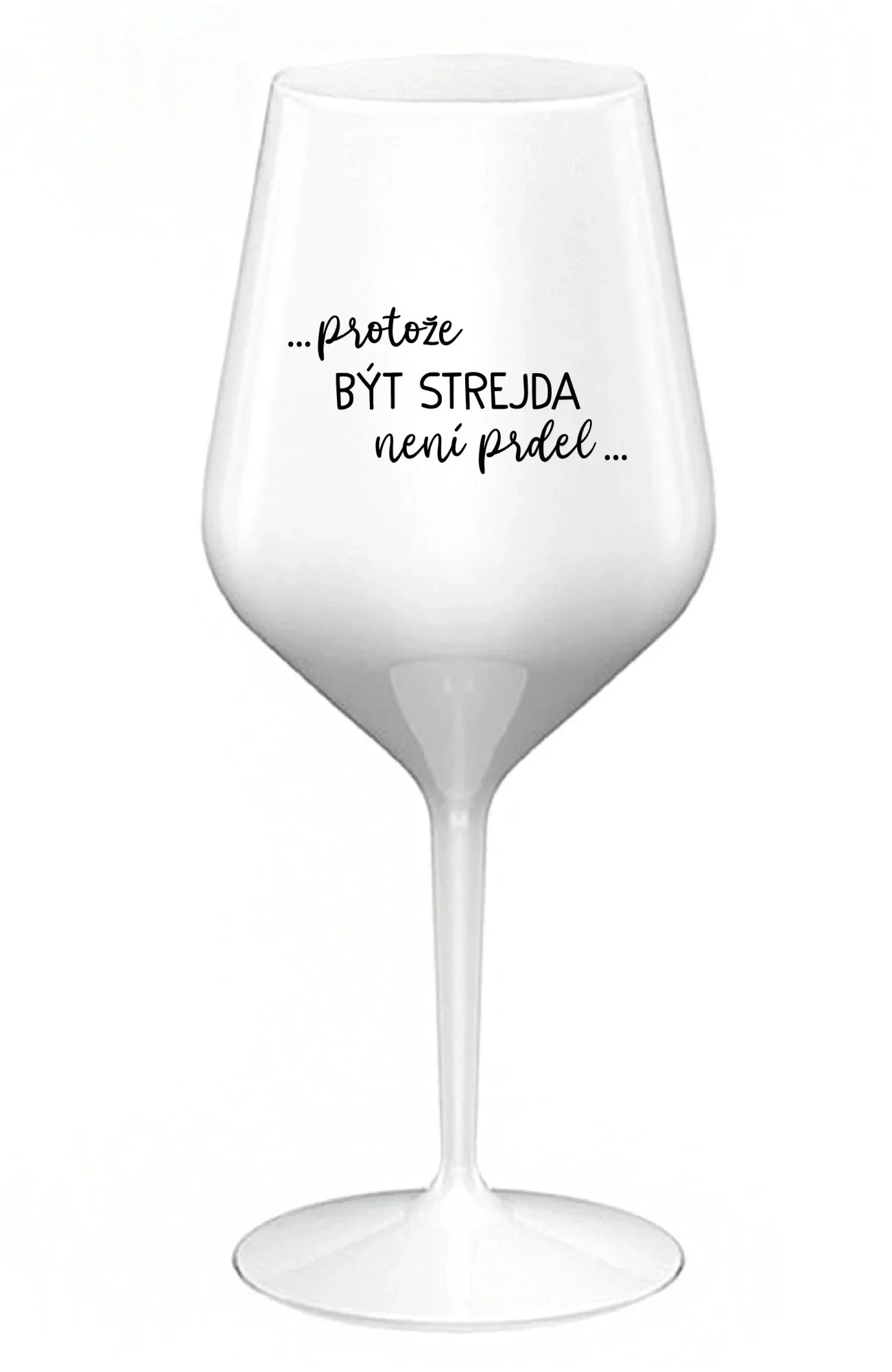 ...PROTOŽE BÝT STREJDA NENÍ PRDEL... - bílá nerozbitná sklenice na víno 470 ml