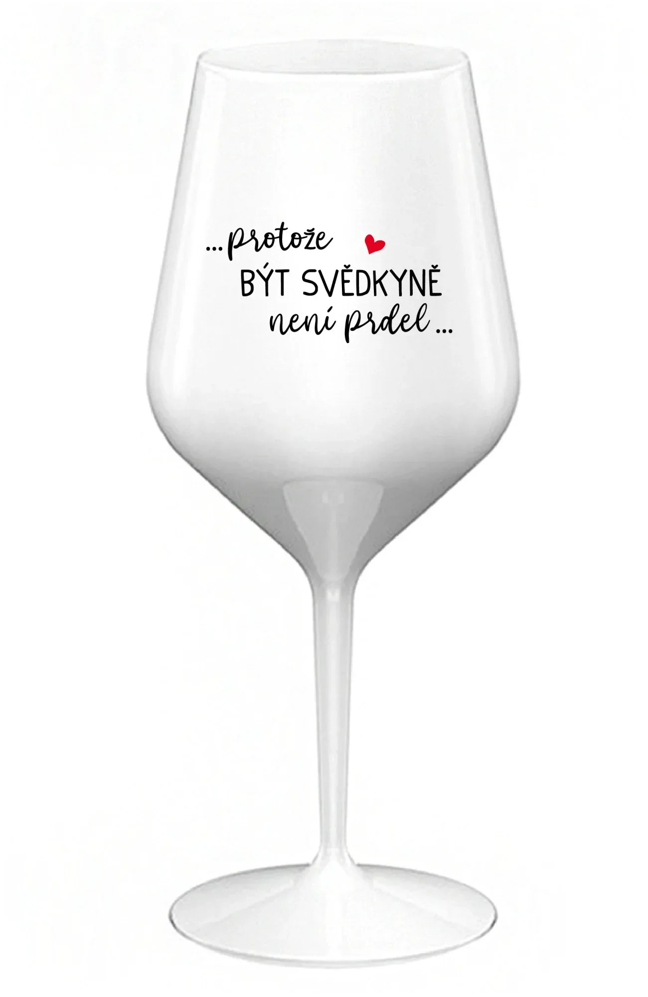 ...PROTOŽE BÝT SVĚDKYNĚ NENÍ PRDEL... - bílá nerozbitná sklenice na víno 470 ml