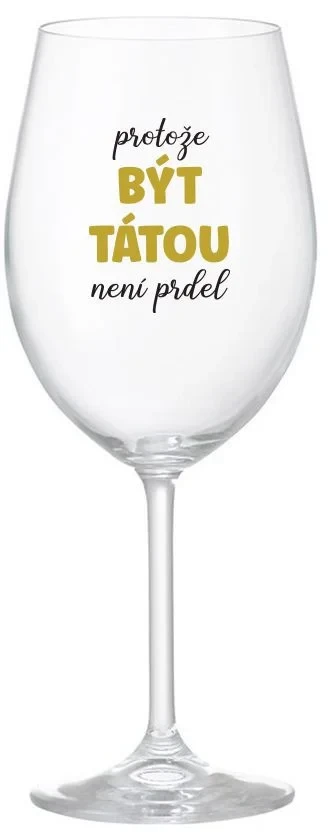 Vinná čirá sklenice s originálním motivem PROTOŽE BÝT TÁTOU NENÍ PRDEL je krásným a osobitým dárkem, které ale využijete i Vy sami třeba ve chvílích, kdy si budete chtít zpříjemnit náročný den. Tyto originální vinné sklenice jsou totiž nejen pro výjimečné události, ale i pro běžné večery, které si chcete zpříjemnit sklenkou dobrého vína. Jistě proto potěší každého milovníka vína, i toho, kdo si umí svůj život vychutnat plnými doušky.parametre