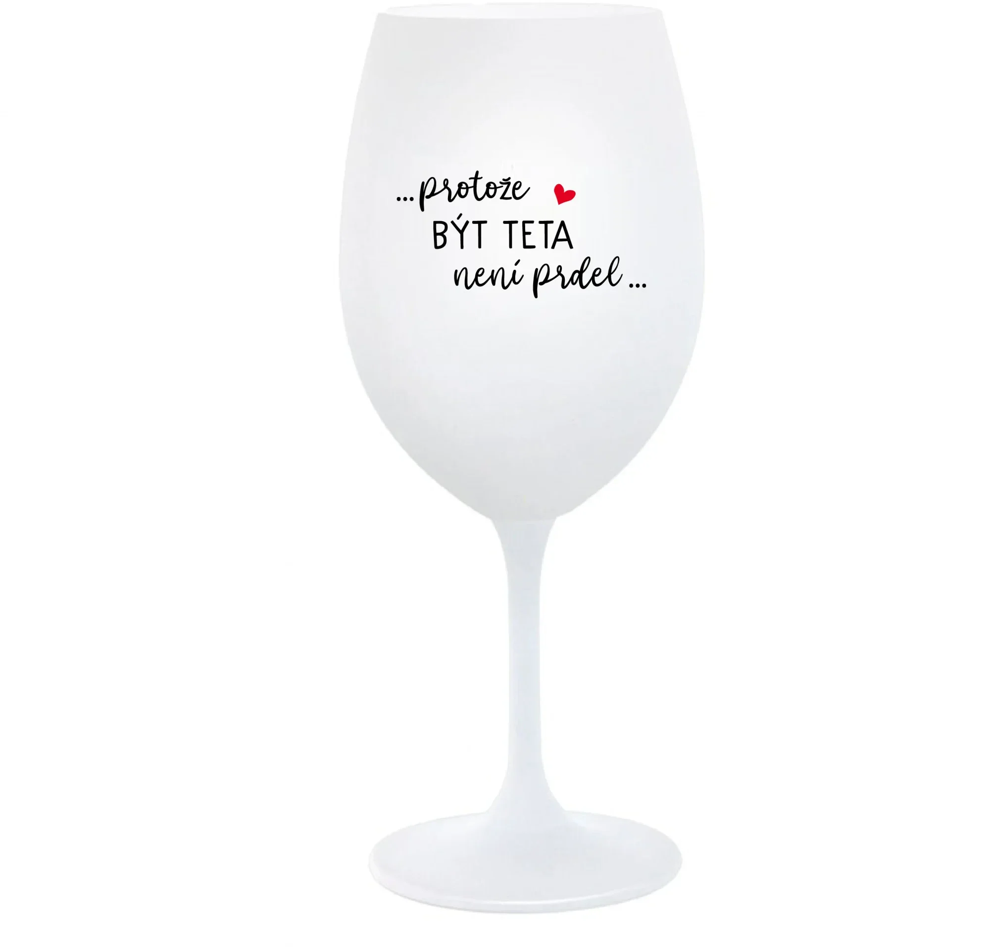 Vinná bílá sklenice s originálním motivem ...PROTOŽE BÝT TETA NENÍ PRDEL... je krásným a osobitým dárkem, které ale využijete i Vy sami třeba ve chvílích, kdy si budete chtít zpříjemnit náročný den. Tyto originální vinné sklenice jsou totiž nejen pro výjimečné události, ale i pro běžné večery, které si chcete zpříjemnit sklenkou dobrého vína. Jistě proto potěší každého milovníka vína, i toho, kdo si umí svůj život vychutnat plnými doušky.parametre