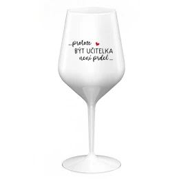 ...PROTOŽE BÝT UČITELKA NENÍ PRDEL... - bílá nerozbitná sklenice na víno 470 ml