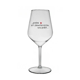 Nerozbitný číry pohár na víno s motívom BÝVAJÚCA SESTRA NIE JE PRELOMOVÁ je skvelý na záhradu, pláž, na výlet, piknik a skvele poslúži aj pri kempovaní. Keďže je vyrobený z kvalitného polykarbonátu, je de facto nerozbitný. Je to luxusný kúsok, s ktorým si môžete vychutnať víno jednoducho kdekoľvek. Má ergonomický tvar, ktorý pekne padne do ruky, a pretože je ľahký, uľahčuje prenášanie. Ľahko sa skladuje a ľahko sa čistí. Vďaka jeho dizajnu si môžete vychutnať bezproblémové pitie vynikajúceho vína naozaj kdekoľvek. Materiál PP. Vyrobený s láskou v Českej republike
