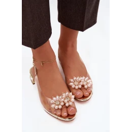Průhledné sandály na nízkém podpatku s ozdobnými detaily D&A MR52-229 Zlaté