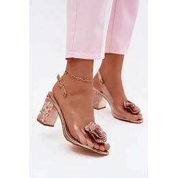 Průhledné sandály na podpatku s krystaly model 22133634 Růžové Zlaté - D&A