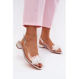 Průhledné sandály s krystaly a květinami stříbrné model 22133839 - D&A