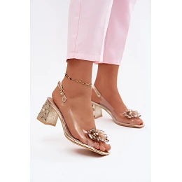 Průhledné sandály s krystaly na klínovém podpatku model 22133818 Zlaté - S.Barski