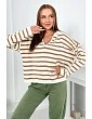 Pruhovaný turecký sveter s golierom a výstrihom do V je jedinečným kúskom oblečenia, ktorý kombinuje eleganciu a ležérny, ležérny štýl. Jeho výrazný pruhovaný vzor dodáva tureckému svetru charakter a je ideálny na rôzne príležitosti. Pruhy v kombinácii s výstrihom do V vytvárajú optický efekt predlžujúci postavu, čo je pre mnoho ľudí nesmierne prospešné. Golier na svetri dodáva punc elegancie a vďaka nemu sa sveter hodí ako na obchodné rokovania, tak aj na neformálnejšie príležitosti. Pruhovaný sveter je tiež extrémne pohodlný vďaka voľnému strihu, ktorý neobmedzuje v pohybe. Je to perfektná voľba pre chladnejšie dni, kedy sa chceme cítiť štýlovo aj v teple. Tento sveter je dokonalým príkladom odevu, ktorý kombinuje módu a pohodlie, a preto je vhodnou investíciou do každého šatníka. Či už si ju vyberiete do práce, na schôdzku s priateľmi alebo na večernú prechádzku, určite si ju do svojej zbierky pridáte. Veľkosť je univerzálna a bude vhodná pre ženy veľkosti M, L, XL.