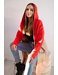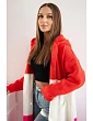 Pruhovaný sveter s kapucňou červený+ružový+ružový neón