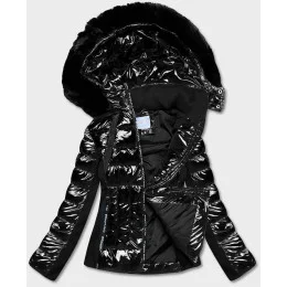 Čierna krátka lesklá bunda na prechodné obdobie (DK100-1)