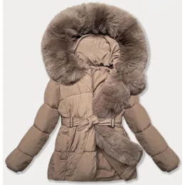 Tmavobéžová dámska prechodná bunda s opaskom J Style (16M9183-84)