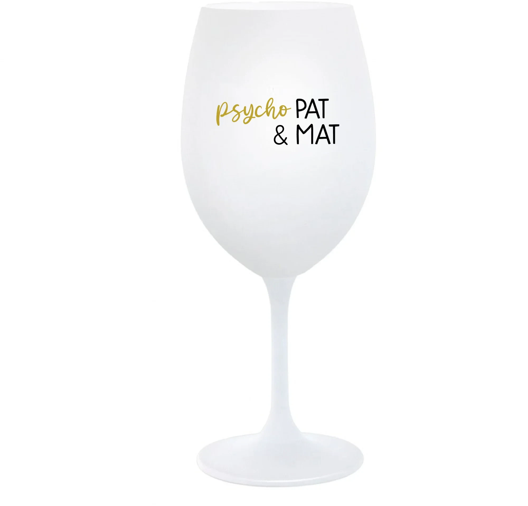 PSYCHO PAT&MAT - bílá sklenice na víno 350 ml