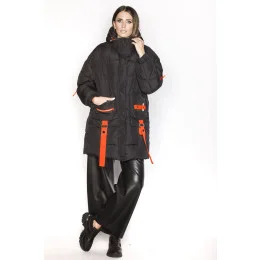 Dámska páperová bunda s ozdobnými pásmi čierna (AG2-J85)