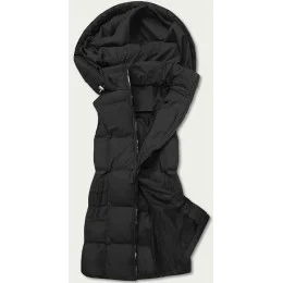 Čierna páperová dámska vesta s kapucňou (5M721-392)