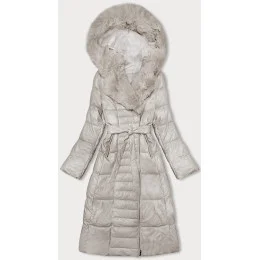 Ann Gissy kabát z ekokože v ecru farbe s kožušinou (AG9-9003)