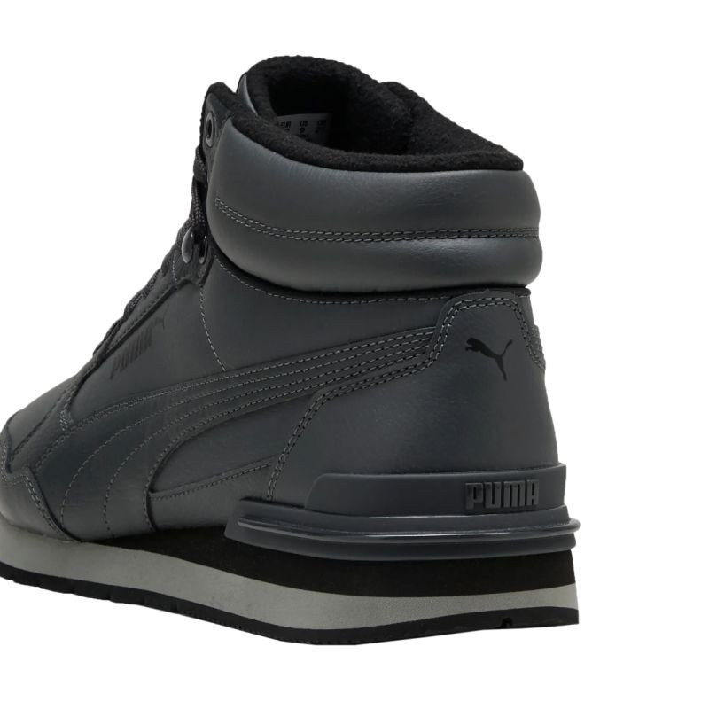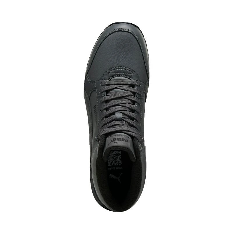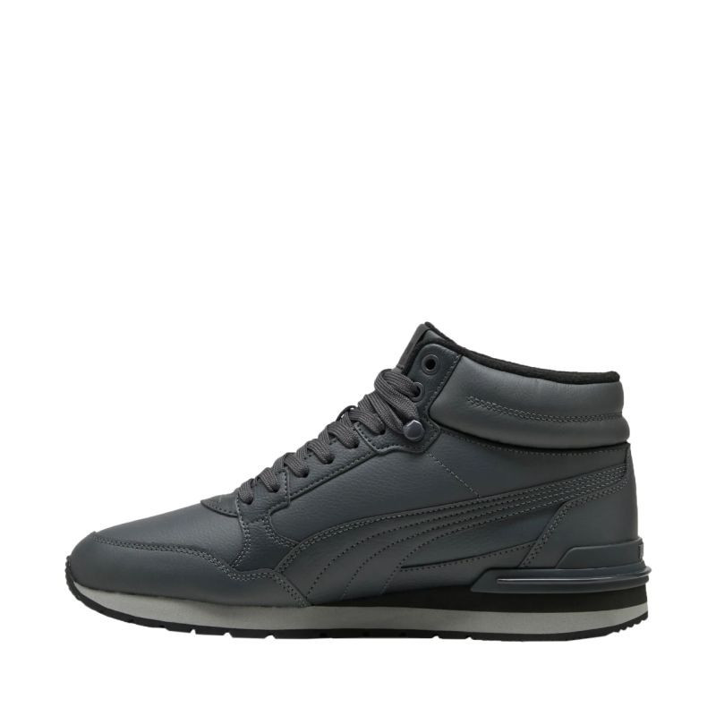 Topánky Puma ST Runner v4 Mid grey 402893 03 Puma sú ideálne na prechodné a zimné nosenie. Zvršok z ekokože. Tradičné šnurovanie so zapínaním na suchý zips. Stredne vysoký profil stabilizuje členok. Textilný interiér s mäkkou flísovou podšívkou. Stielka SoftFoam+ s antimikrobiálnymi vlastnosťami kopíruje tvar chodidla. Odolná podrážka dostáva priľnavý dezén. Obuv vyrobená z minimálne 20 % recyklovaných materiálov.