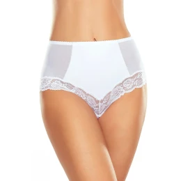 Elegantné tvarujúce nohavičky s vysokým pásom sú dokonalým spojením ženského štýlu a funkčnosti. Sú vyrobené z mäkkého, elastického mikrovlákna, dokonale sa prispôsobia siluete a poskytujú pocit pohodlia a hladkosti počas celého dňa. Predná časť vystužená jemnou sieťovinou účinne tvaruje bruško, zoštíhľuje pás a zvýrazňuje ženské krivky. Spodná časť zdobená jemnou kvetinovou čipkou dodáva bielizni výnimočne zmyselný a elegantný vzhľad. Nohavičky sú ideálne na každodenné štylizácie a elegantné outfity, zaručujú krásny vzhľad a pohodlné nosenie.