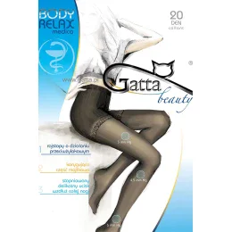 Punčochové zboží značky Gatta. Model Body Relaxmedica 20. Výrobek je vyroben z 87 % z polyamidu a 13 % z elastanu. Výrobek pro ženy. Tloušťka: 20 denierů.