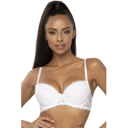 Dámska push-up podprsenka v bielej farbe, celočipkovaná, s vyberateľnými vypchávkami. Vnútorná strana košíčkov podšitá bavlnou, medzi košíčkami mašlička. Bez bočných veľkých kostíc, nastaviteľné, odopínateľné ramienka. Zapínanie na háčik a očko vzadu. Dvojité zapínanie na háčik a očko s trojcestným nastavením.
