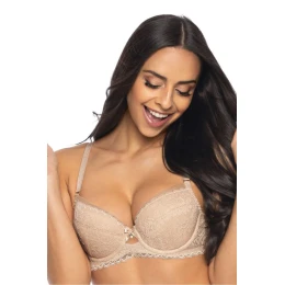 Zvodná spodná bielizeň Milou v béžovej farbe, klasická a zároveň sexi. Push-up podprsenka je celá vyrobená z očarujúcej čipky. Okraj košíčkov je zdobený tylovými vsadkami. Spodná časť spodnej bielizne je mierne predĺžená, čo vytvára efekt koketnej podprsenky. Očká medzi košíčkami a akcent v podobe šperku dodávajú bielizni charizmu. Model má vyberateľné vsadky a odnímateľné, nastaviteľné ramienka. Dvojité zapínanie na háčiky s trojcestným nastavením.
