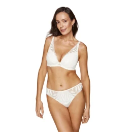 Čipkovaná push-up podprsenka Eclipse je ideálnou voľbou do hlbokých výstrihov. Košíčky, vyrobené z tenkej korzetovej peny, sú z vonkajšej strany pokryté originálnou čipkou. Vnútorná strana podprsenky má vrecká, v ktorých sú umiestnené push-up vložky. Vnútorná strana košíčkov je potiahnutá bavlnou s certifikátom OEKO-TEX, vďaka čomu je šetrná k pokožke. Zadná strana podprsenky je vyrobená z čipky. Zvislé bočné kostice stabilizujú obvod podprsenky. Podprsenka bola navrhnutá a ušitá v Poľsku.