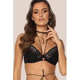 Push-up podprsenka Rochelle PU-1036 bola vyrobená z výraznej čiernej čipky s kvetinovým vzorom, ktorý jej dodáva elegantný a zmyselný charakter. Model má elastický choker s pozlátenými detailmi, ktoré zvýrazňujú jeho jedinečný dizajn. Dvojité push-up vložky umožňujú dodatočné nadvihnutie a tvarovanie poprsia. Podprsenka má nastaviteľné ramienka, ktoré sa dajú vzadu odopnúť, čo zvyšuje jej funkčnosť a pohodlné nosenie.