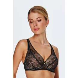 Podprsenka má vystužené košíčky s gélovými vložkami, ktoré poskytujú dodatočnú oporu a zvýrazňujú poprsie, čím mu dodávajú plnší tvar. Košíčky sú pokryté čipkou, ktorá jemne splýva s ramienkami a dodáva im ľahkosť. Obvod a mostík podprsenky zdobí jemná čipka, ktorá dodáva eleganciu a ženskosť.