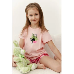 Letnia piżama dziewczęca Veronica od Taro to doskonały wybór na ciepłe noce. Wykonana z 100% miękkiej bawełny, zapewnia wygodę i komfort noszenia przez całą noc. Zestaw składa się z koszulki z krótkim rękawem, ozdobionej kolorowym nadrukiem, oraz krótkich wzorzystych spodenek, które dodają uroku i swobody ruchów. Delikatny i przewiewny materiał sprawia, że skóra dziecka oddycha, a piżamka jest niezwykle przyjemna w dotyku. Zapakowana w foliowy woreczek – idealna na prezent!