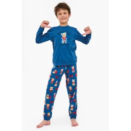 Chlapecké pyžamo BOY YOUNG DR 966/178 BOXER představuje pohodlí a styl v jednom. Je vyrobeno ze 100% kvalitní, měkké bavlny a poskytuje pohodlí a prodyšnost po celou noc. Horní díl s dlouhými rukávy zdobí na přední straně barevný potisk, který mu dodává chlapecký charakter. Manžety, spodní část horního dílu a nohavice kalhot jsou lemovány pružnými manžetami, které zajišťují dokonalé přizpůsobení a zabraňují vyhrnování látky během spánku. Součástí soupravy jsou dlouhé vzorované kalhoty v kontrastní barvě. Celá souprava je zabalena v atraktivní krabici – skvělý nápad na dárek.