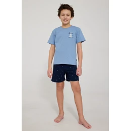 Chlapčenské pyžamo PACIFIC je pohodlnou a štýlovou voľbou na letné noci. Je vyrobené zo 100 % kvalitnej, mäkkej a priedušnej bavlny, poskytuje pohodlie, voľnosť pohybu a príjemný pocit na pokožke. Tričko s krátkym rukávom zdobí jemná, módna potlač na prednej strane, ktorá mu dodáva ľahký, dovolenkový charakter.