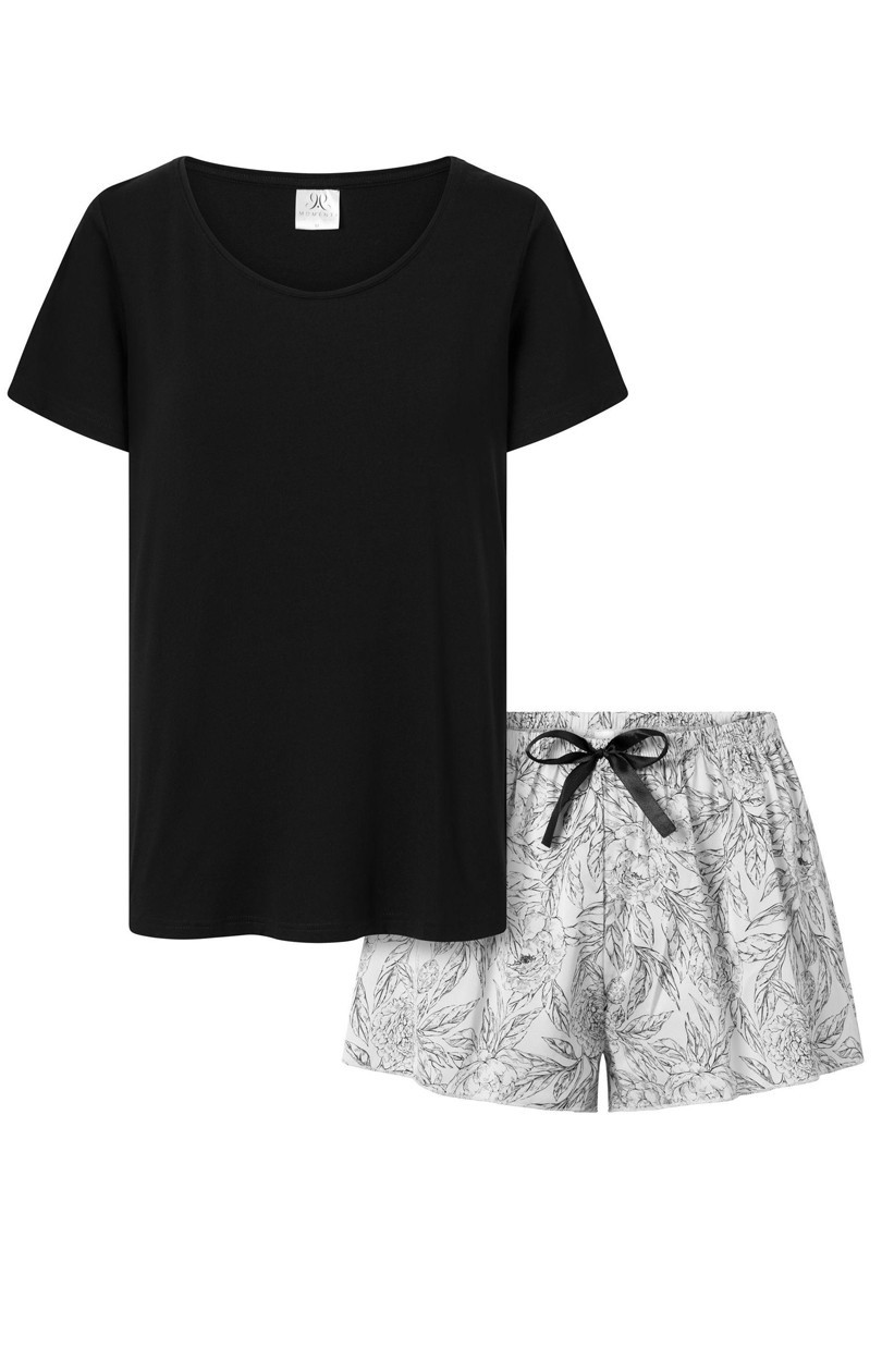 Blúzkové pyžamo s krátkymi rukávmi je kombináciou elegancie a pohodlia, ideálne na pokojné večery doma a ako domáce oblečenie. Blúzka s výstrihom do U dodáva jemnosť a ženský pôvab a zároveň vytvára elegantný vzhľad. Voľný, pohodlný strih zaručuje voľnosť pohybu a dokonalé prispôsobenie. Súčasťou súpravy sú aj šortky, ktoré dokonale dopĺňajú blúzku a vytvárajú kompletný vzhľad. Elastický pás zaručuje pohodlné nosenie a tvarovaný strih zvýrazňuje ženské prednosti. Pyžamo bolo navrhnuté s ohľadom na pohodlie a štýl, takže jeho nosenie je skutočným potešením. Materiál pyžama je elastický, čo prispieva k pohodliu nositeľa. Vysokokvalitná potlač tkaniny zaručuje odolnosť a estetiku aj po mnohých praniach. Výrobok bol navrhnutý a ušitý v Poľsku, čo mu dodáva miestny charakter a zaručuje vysokú kvalitu spracovania. Dvojdielny pyžamový komplet s blúzkou s krátkymi rukávmi je návrhom pre ženy, ktoré chcú doma spojiť pohodlie s elegantným štýlom.