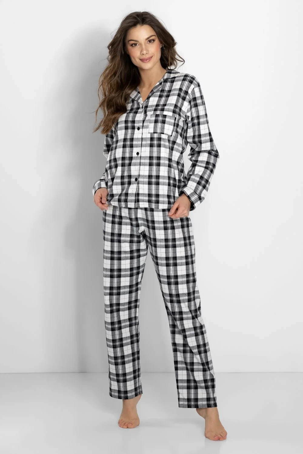 Toto dámske pyžamo navrhnuté a ušité v Poľsku predstavuje eleganciu a pohodlie v jednom. Súprava sa skladá z košele s dlhými rukávmi a dlhých nohavíc. Košeľa má výstrih do V, golier, manžetové rukávy, voľný oversize strih a zapínanie na gombíky. Nohavice majú tiež voľný, pohodlný strih a elastický pás. Pyžamo je vyrobené z prírodných materiálov a umožňuje pokožke dýchať. Kvalitné spracovanie zaručuje dlhú životnosť. Vyhnite sa sušeniu v sušičke. Vďaka jemnému a elegantnému dizajnu je pyžamo ideálne aj ako darček. 100 %bavlna