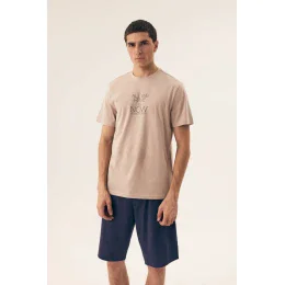 Mužský pyžamový set, který spojuje pohodlí s módním vzhledem. Tričko s krátkým rukávem a kulatým výstřihem je ozdobeno módním nápisem, který mu dodává stylový charakter. Vyrobeno z měkké, prodyšné látky, poskytuje pohodlí po celou noc. Krátké kalhoty s potiskem doplňují celkový vzhled, nabízejí lehkost a pohodlí. Kalhoty jsou bez kapes, co jim dodává minimalistický vzhled. Široký elastický pás zajišťuje perfektní přiléhání a pohodlí při nošení. Pyžamo je baleno v elegantním boxu, což ho činí skvělým nápadem na dárek. Ideální volba pro muže, kteří ocení pohodlí a moderní design ve svém nočním šatníku! Rozměry: Velikost M: Prsa 94-98 cm, boky 98-102 cm Velikost L: Prsa 98-102 cm, boky 102-106 cm Velikost XL: Prsa 102-106 cm, boky 106-110 cm Velikost XXL: Prsa 106-110 cm, boky 110-114 cm Velikost XXXL: Prsa 114-120 cm, boky 114-118 cm