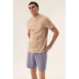 Pánska pyžamová súprava, ktorá spája pohodlie s módnym dizajnom a je ideálna na teplé noci a oddych doma. Tričko s krátkymi rukávmi má polkruhový výstrih a zdobí ho jemná potlač, ktorá mu dodáva charakter. Je vyrobené z mäkkej a priedušnej tkaniny, poskytuje pohodlie a príjemne sa nosí. Šortky dopĺňajú celkový vzhľad, majú voľný a pohodlný strih, ktorý zaručuje úplnú voľnosť pohybu. Široký elastický pás zaručuje ideálne prispôsobenie a pohodlie. Pyžamo je zabalené v elegantnej škatuľke a je aj skvelým nápadom na darček. Ideálna voľba pre mužov, ktorí hľadajú kombináciu pohodlia a štýlu vo svojom nočnom šatníku!