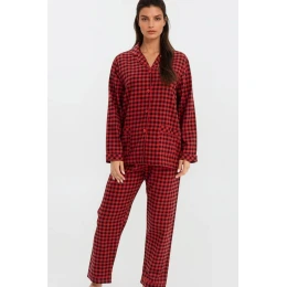 Bavlněná dámská pyžama v kostkovaném provedení X-MAS je klasický set vytvořený s ohledem na chladné večery a útulná rána. Výrazný červený kostkovaný vzor v kombinaci s měkkou, prodyšnou bavlnou dodává pyžamu nadčasový zimní charakter. Košile s knoflíky a kalhoty s rovným střihem zajistí plnou volnost pohybu a pohodlí při nošení. Pečlivě zpracované detaily, jako kontrastní lem nebo praktické kapsy, zdůrazňují jak funkčnost, tak estetiku setu. Je to pyžama, která spojuje tradiční styl s pohodlím, ideální pro klidné chvíle v domácím útulku. Klasický kostkovaný vzor v odstínech červené a černé nadčasový, vánoční charakter. Pyžama X-MAS skvěle zapadá do zimní atmosféry, ideální na lenivé ráno s šálkem horkého čaje, večerní filmové večery nebo vánoční chvíle klidu. Zajišťuje pohodlí a styl v každém domácím okamžiku. Každý model Pure Sin je vyroben z vysoce kvalitních materiálů, s důrazem na nejmenší detaily, i