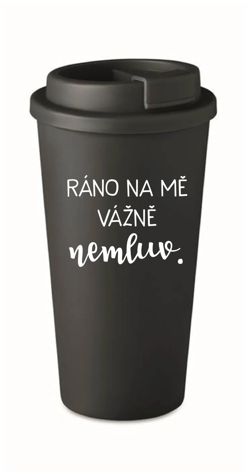 RÁNO NA MĚ VÁŽNĚ NEMLUV. - černý termohrnek 475 ml