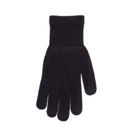 Dámske rukavice s čiernymi tryskami, pre dotykové obrazovky. Zloženie: 77% akryl, 20% polyester, 3% elastan