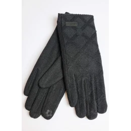 Dámske rukavice s aplikáciou. Vyrobené z pleteniny s príjemným hrejivým fleecom vo vnútri, zdobené diamantovým vzorom. Ukazovák a palec majú špeciálne prešitie, ktoré umožňuje ovládať telefón bez nutnosti vyzliecť si rukavice.